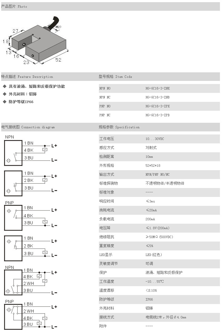/傳感器 HG-GC16-3-ZNK,HG-GC16-3-ZNB,HG-GC16-3-ZPK,HG-GC16-3-ZPB,