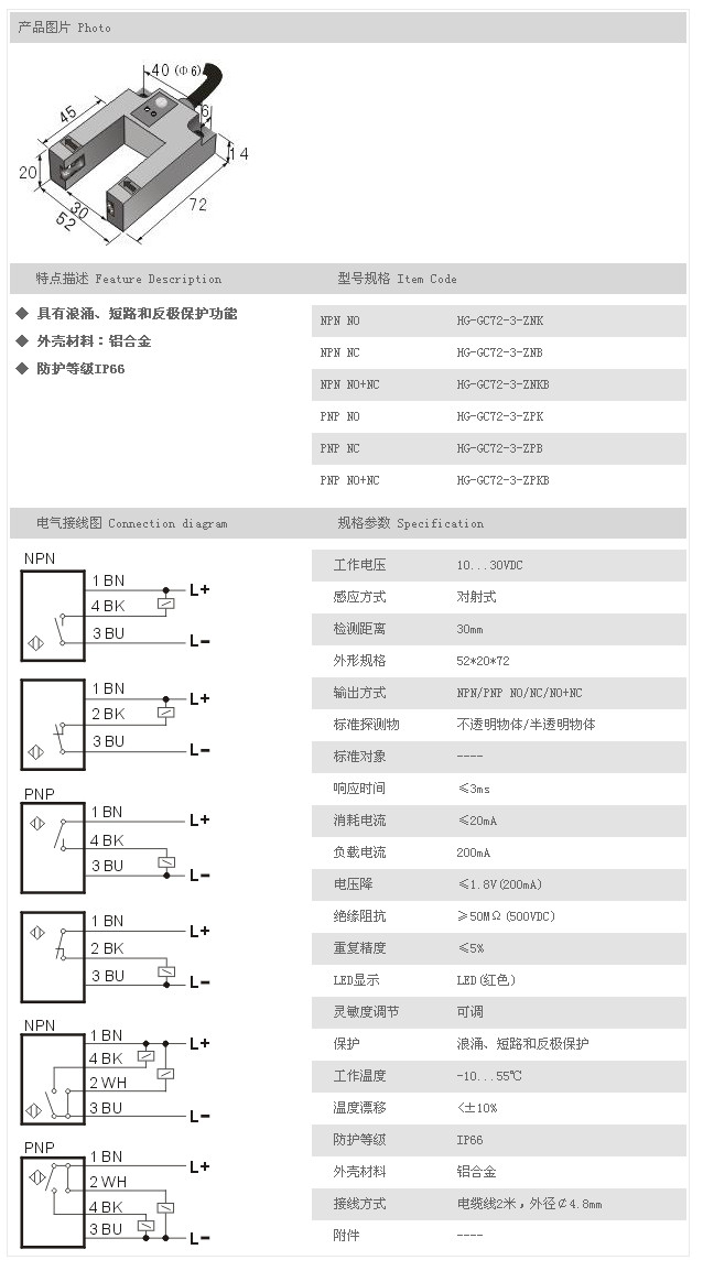槽型光電開關(guān)/傳感器 HG-GC72-3-ZNK,HG-GC72-3-ZNB,HG-GC72-3-ZNKB,HG-GC72-3-ZPK,HG-GC72-3-ZPB,HG-GC72-3-ZPKB |