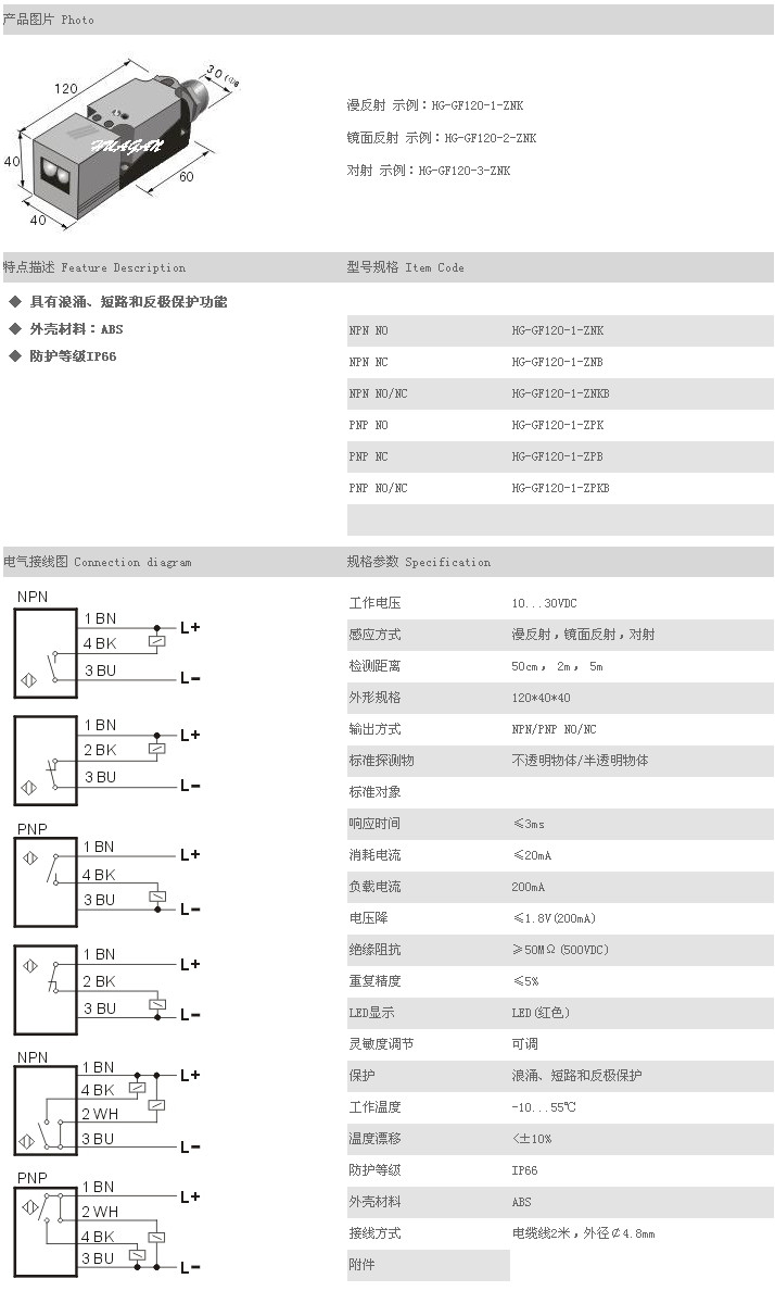 /傳感器 HG-GF120-1-ZNK,HG-GF120-1-ZNB,HG-GF120-1-ZNKB,HG-GF120-1-ZPK,HG-GF120-1-ZPB,HG-GF120-1-ZPKB,