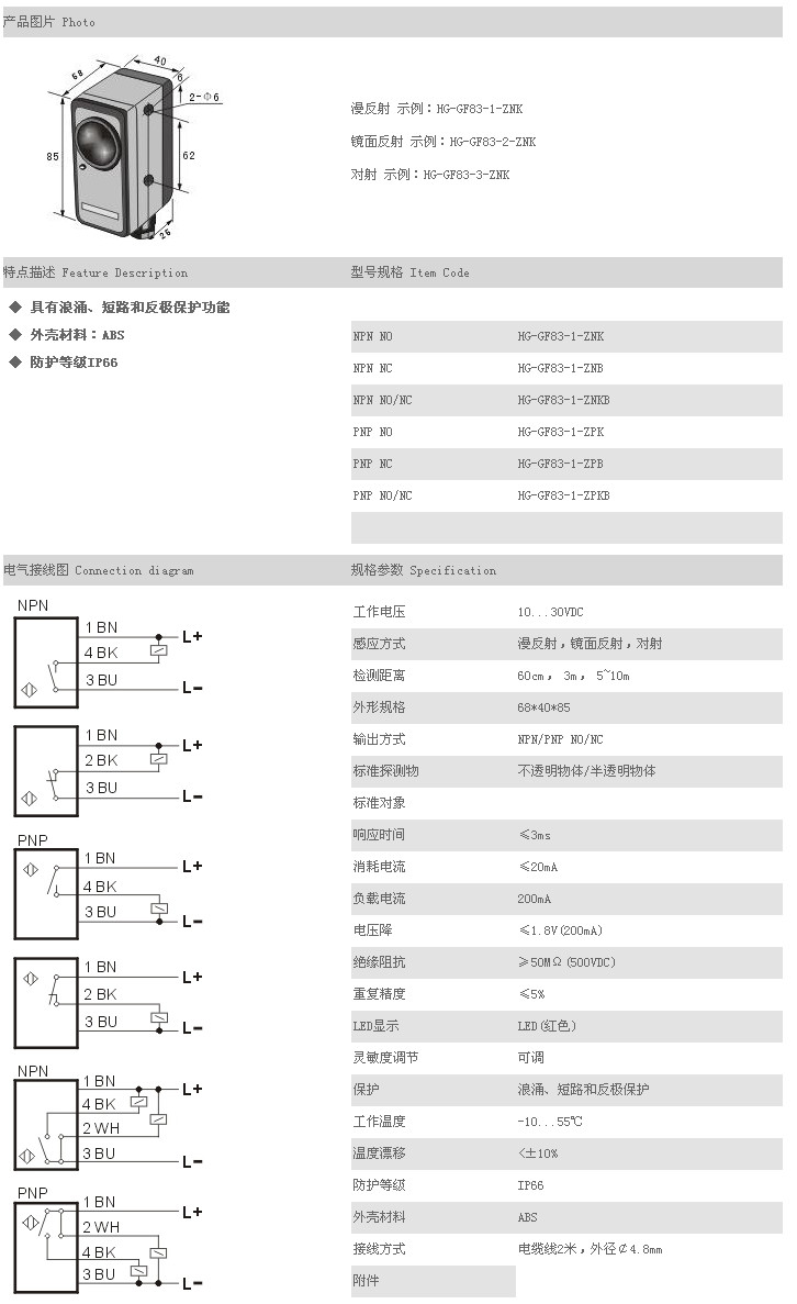 /傳感器 HG-GF83-1-ZNK,HG-GF83-1-ZNB,HG-GF83-1-ZNKB,HG-GF83-1-ZPK,HG-GF83-1-ZPB,HG-GF83-1-ZPKB