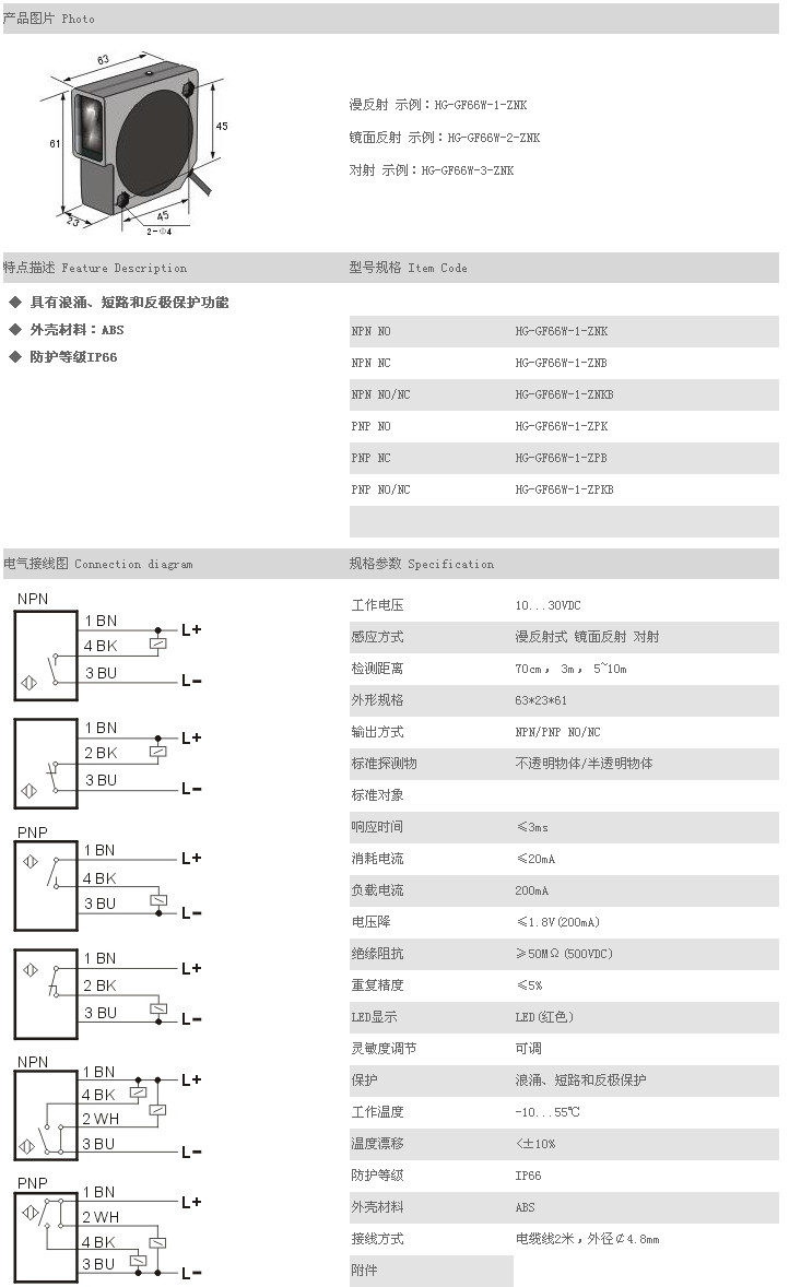 /傳感器 HG-GF66W-1-ZNK,HG-GF66W-1-ZNB,HG-GF66W-1-ZNKB,HG-GF66W-1-ZPK,HG-GF66W-1-ZPB,HG-GF66W-1-ZPKB,