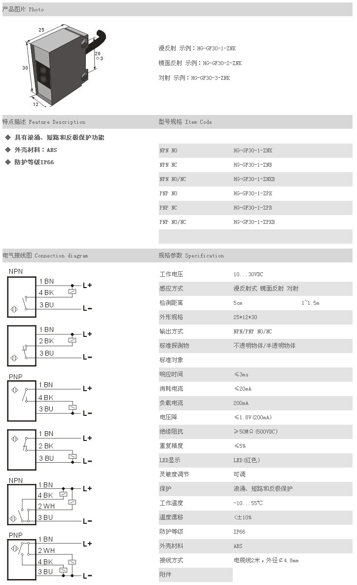 方型光電開關(guān)/傳感器 HG-GF30-1-ZNK,HG-GF30-1-ZNB,HG-GF30-1-ZNKB,HG-GF30-1-ZPK,HG-GF30-1-ZPB,HG-GF30-1-ZPKB, |