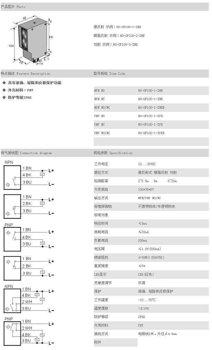 方型光電開關(guān)/傳感器 HG-GF100-1-ZNK,HG-GF100-1-ZNB,HG-GF100-1-ZNKB,HG-GF100-1-ZPK,HG-GF100-1-ZPB,HG-GF100-1-ZP |