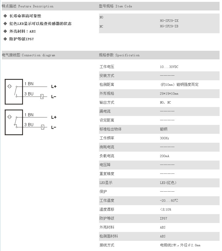 普通型磁性開關(guān) HG-SF29-ZK,HG-SF29-ZB,