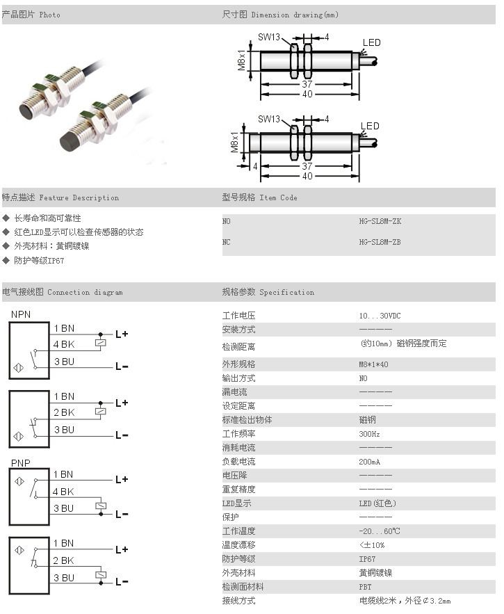普通型磁性開關(guān) HG-SL8M-ZK,HG-SL8M-ZB,