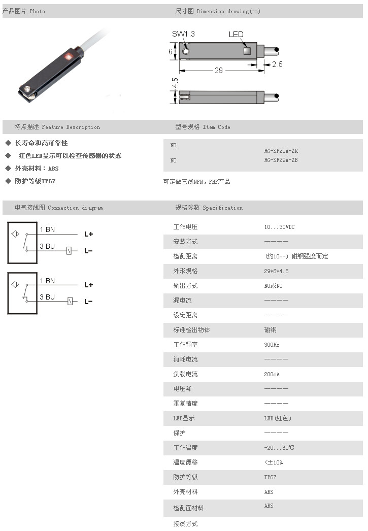 普通型磁性開關(guān) HG-SF29W-ZK,HG-SF29W-ZB,
