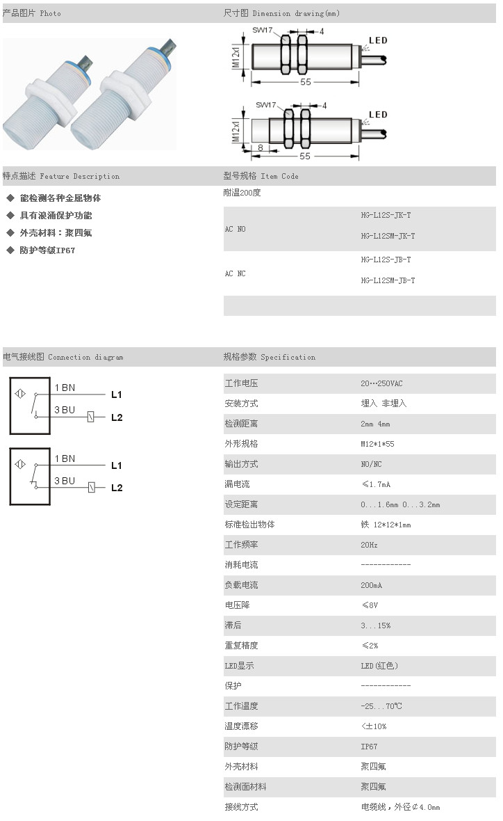 防水/防油/防腐蝕接近開關(guān) HG-L12S-JK-T,HG-L12SM-JK-T,HG-L12S-JB-T,HG-L12SM-JB-T,