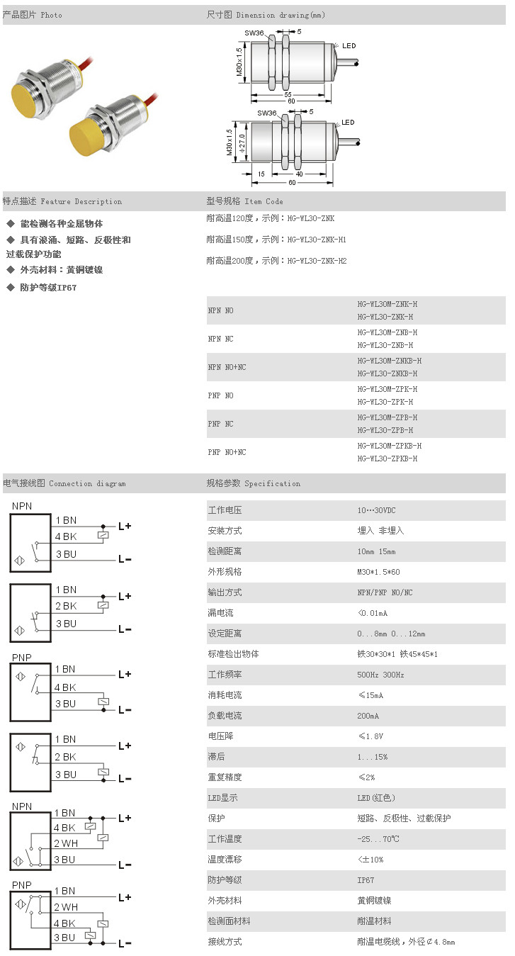 耐高溫接近開(kāi)關(guān)(低溫) HG-WL30M-ZNK-H,HG-WL30-ZNK-H,HG-WL30M-ZNB-H,HG-WL30-ZNB-H,HG-WL30M-ZNKB-H,HG-WL30-ZNKB-H,HG-WL30M-ZPK-H,HG-WL30-ZPK-H,HG-WL30M-ZPB-H,HG-WL30-ZPB-H,HG-WL30M-ZPKB-H,HG-WL30-ZPKB-H,