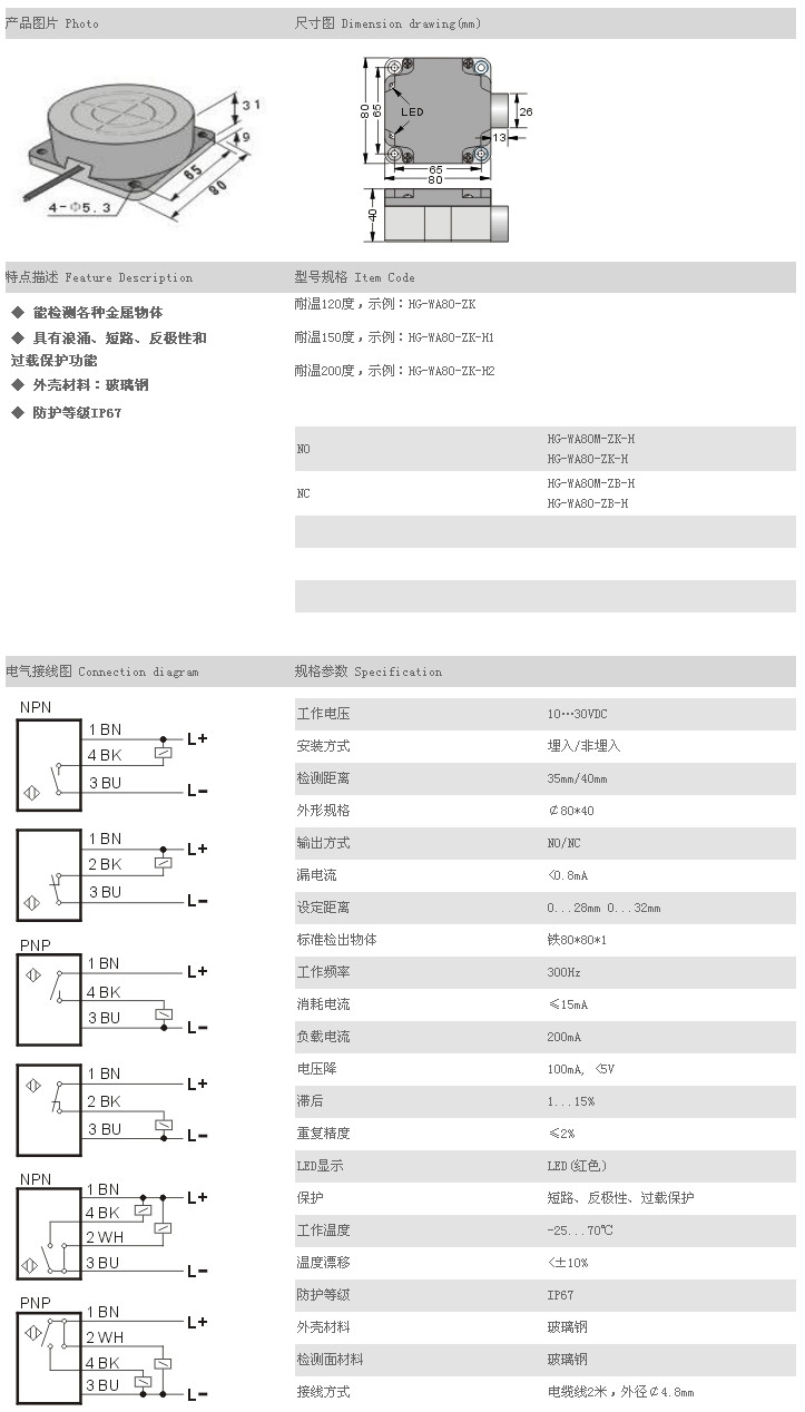耐高溫接近開關(guān)(低溫) HG-WA80M-ZK-H,HG-WA80-ZK-H,HG-WA80M-ZB-H,HG-WA80-ZB-H,