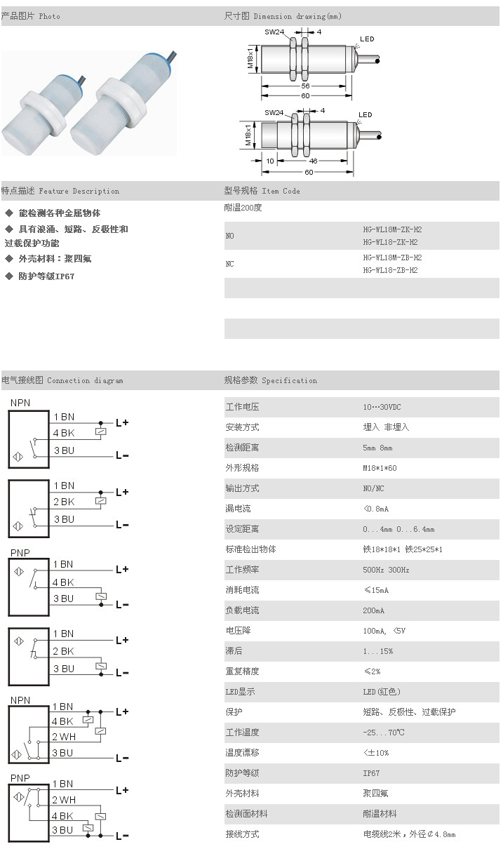耐高溫接近開(kāi)關(guān)(低溫) HG-WL18M-ZK-H2,HG-WL18-ZK-H2,HG-WL18M-ZB-H2,HG-WL18-ZB-H2,