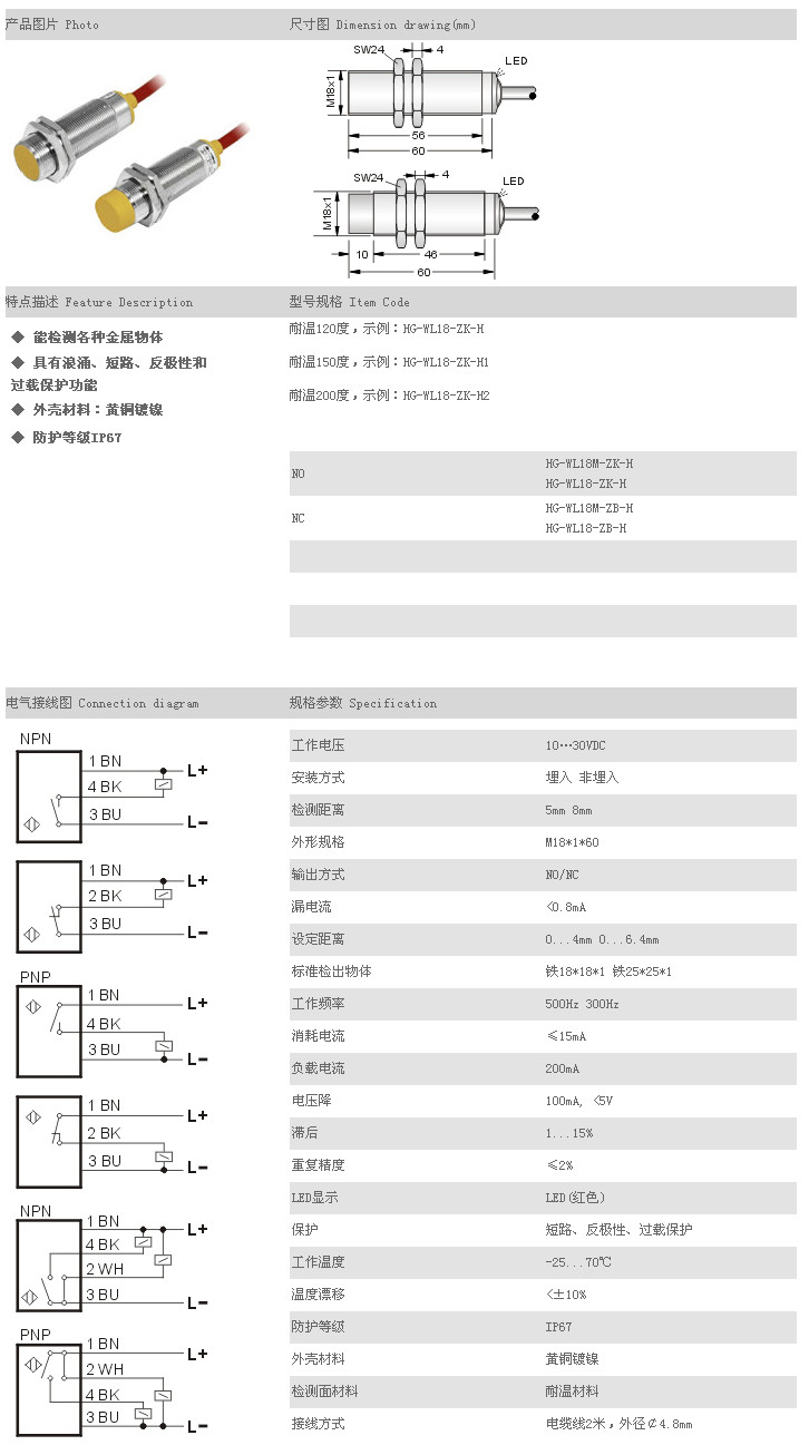 耐高溫接近開關(低溫) HG-WL18M-ZK-H,HG-WL18-ZK-H,HG-WL18M-ZB-H,HG-WL18-ZB-H,