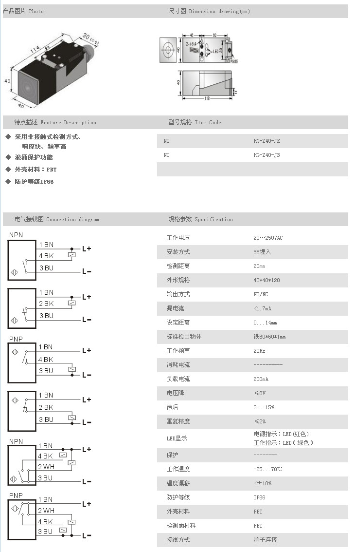 組合型接近傳感器 HG-Z40-JK,HG-Z40-JB,