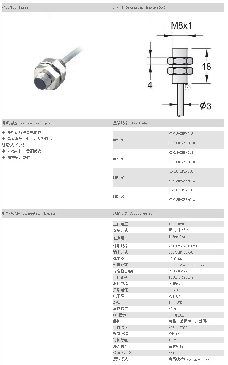 超小型接近開關 HG-L8-ZNK/C18,HG-L8M-ZNK/C18,HG-L8-ZNB/C18,HG-L8M-ZNB/C18,HG-L8-ZPK/C18,HG-L8M-ZPK/C18,HG-L8 |