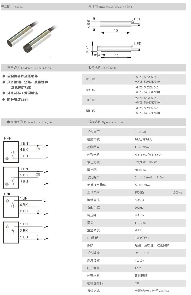 超小型接近開關(guān) HG-Y6.5-ZNK/C40,HG-Y6.5M-ZNK/C40,HG-Y6.5-ZNB/C40,HG-Y6.5M-ZNB/C40,HG-Y6.5-ZPK/C40,HG-Y6.5M-Z