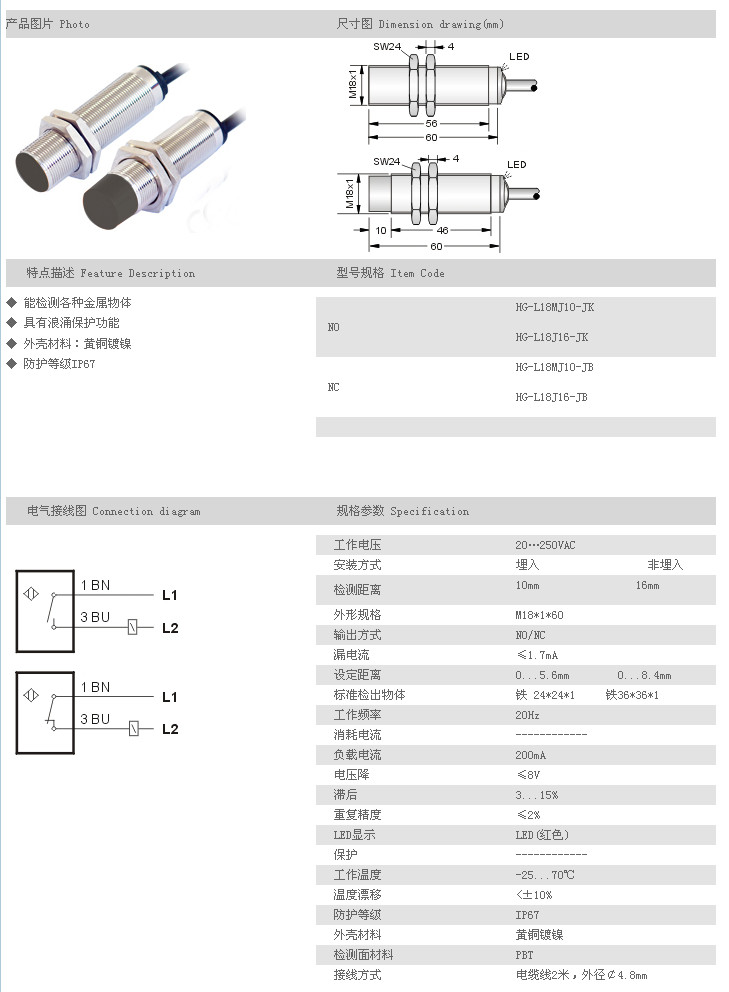 遠(yuǎn)距離型接近開關(guān) HG-L18MJ10-JK,HG-L18J16-JK,HG-L18MJ10-JB,HG-L18J16-JB,