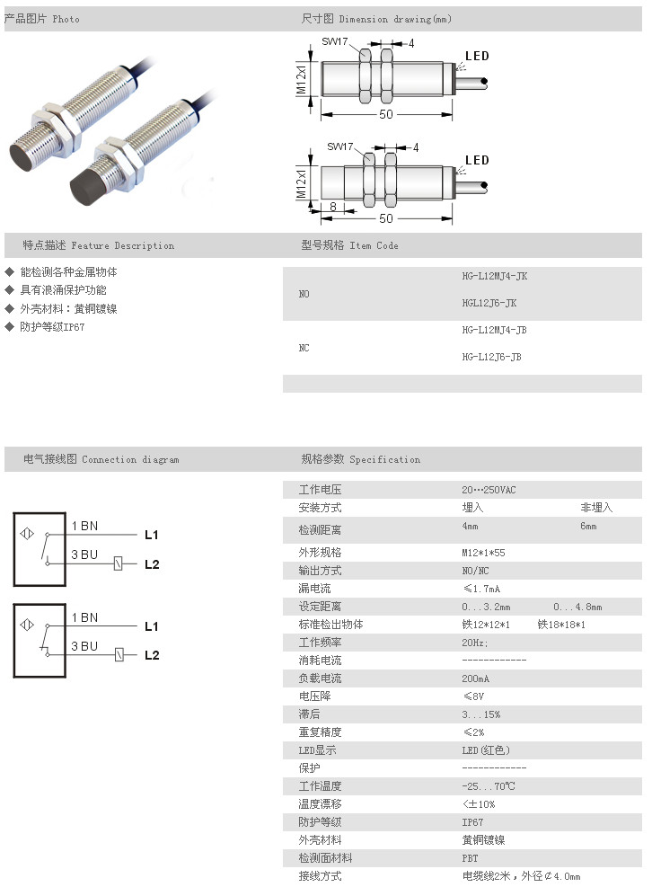 遠距離型接近開關(guān) HG-L12MJ4-JK,HGL12J6-JK,HG-L12MJ4-JB,HG-L12J6-JB,