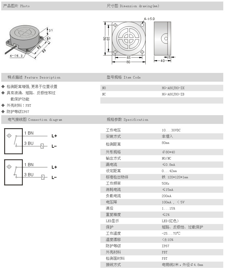 遠(yuǎn)距離型接近開關(guān) HG-A80J80-ZK,HG-A80J80-ZB,
