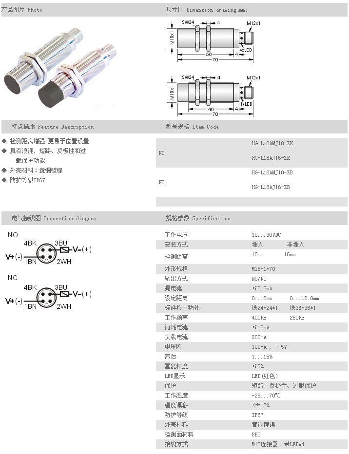 遠(yuǎn)距離型接近開關(guān) HG-L18AMJ10-ZK,HG-L18AJ16-ZK,HG-L18AMJ10-ZB,HG-L18AJ16-ZB,