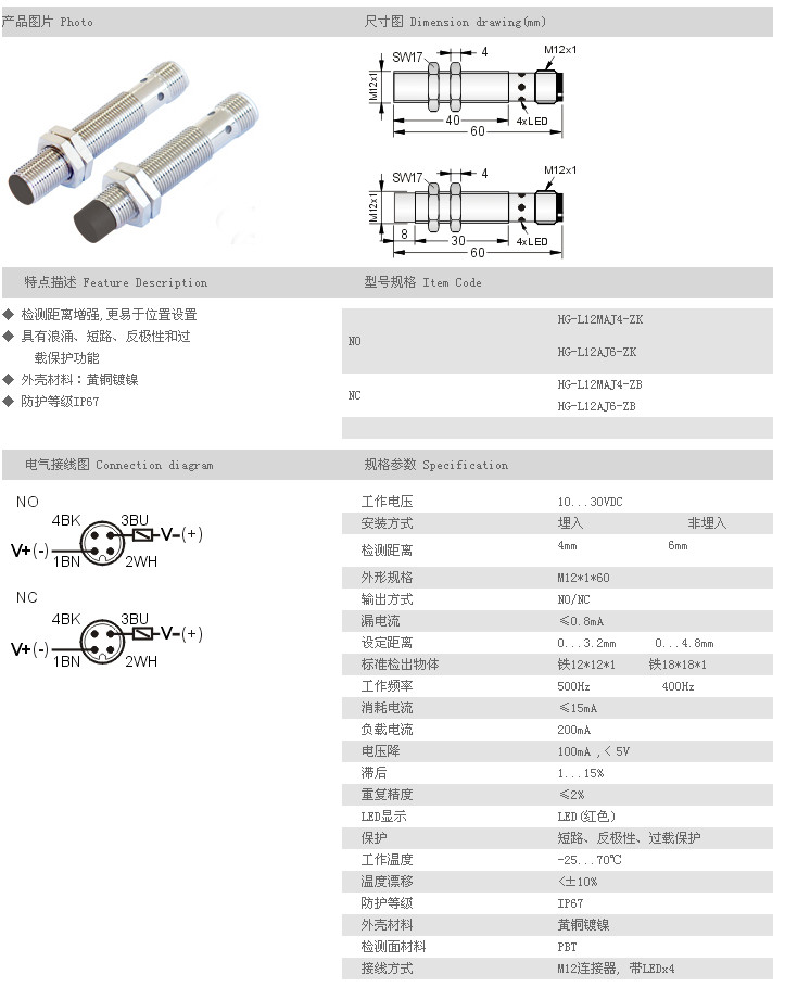 遠(yuǎn)距離型接近開(kāi)關(guān) HG-L12MAJ4-ZK,HG-L12AJ6-ZK,HG-L12MAJ4-ZB,HG-L12AJ6-ZB,