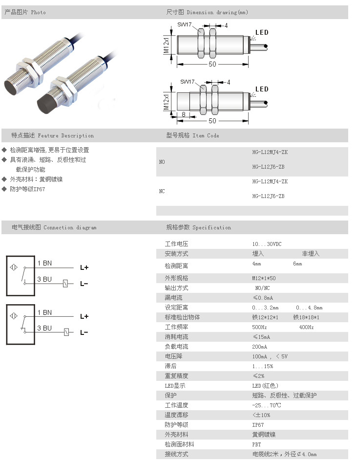 遠(yuǎn)距離型接近開關(guān) HG-L12MJ4-ZK,HG-L12J6-ZB,HG-L12MJ4-ZK,HG-L12J6-ZB,