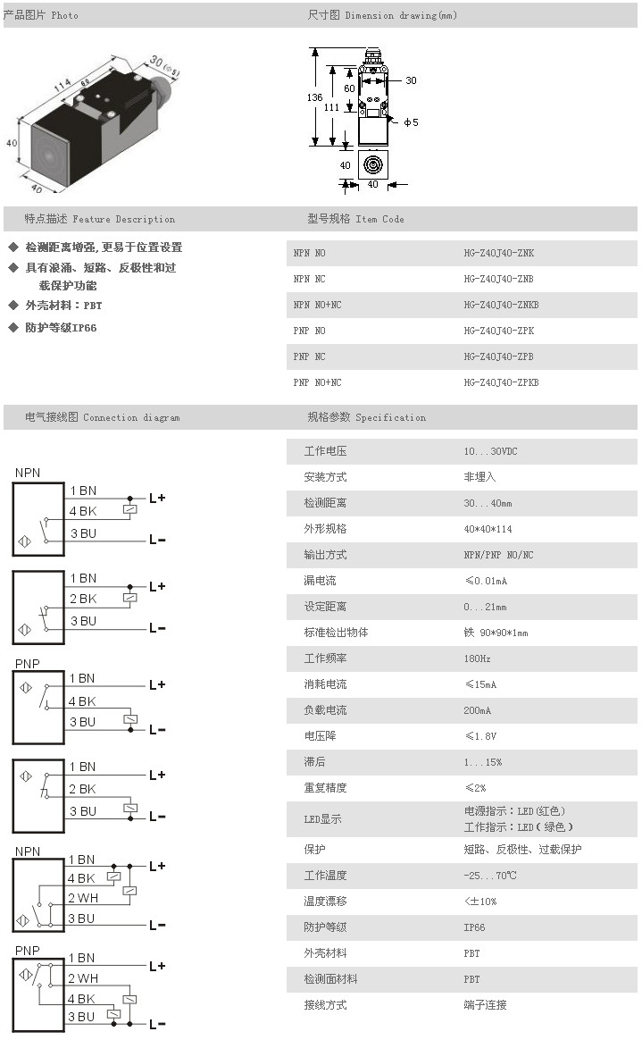 遠(yuǎn)距離型接近開關(guān) HG-Z40J40-ZNK,HG-Z40J40-ZNB,HG-Z40J40-ZNKB,HG-Z40J40-ZPK,HG-Z40J40-ZPB,HG-Z40J40-ZPKB