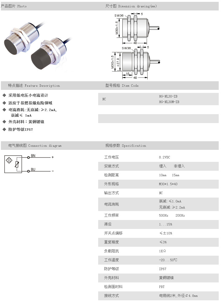 L30防爆型接近開關(guān) HG-NL30-ZB,HG-NL30M-ZB,