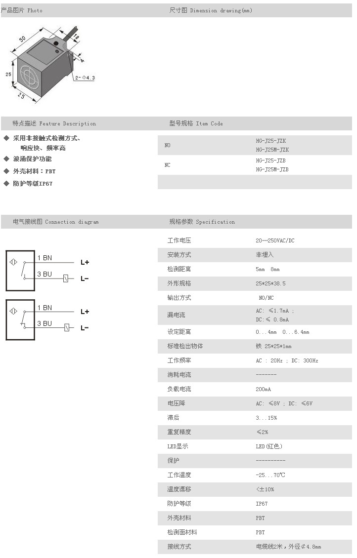 方型接近開關(guān) HG-J25-JZK,HG-J25M-JZK,HG-J25-JZB,HG-J25M-JZB,