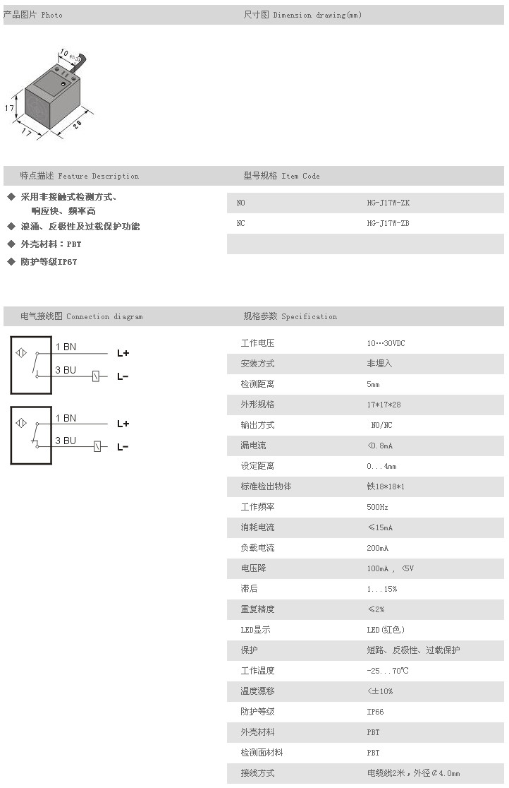方型接近開(kāi)關(guān) HG-J17W-ZK,HG-J17W-ZB,