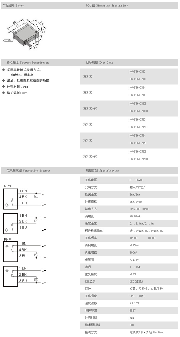 F26方型接近開關(guān) HG-F26-ZNK,HG-F26M-ZNK,HG-F26-ZNB,HG-F26M-ZNB,HG-F26-ZNKB,