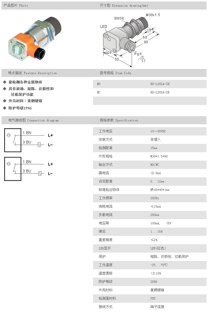圓柱型接近開關 HG-L30ZA-ZK,HG-L30ZA-ZB,