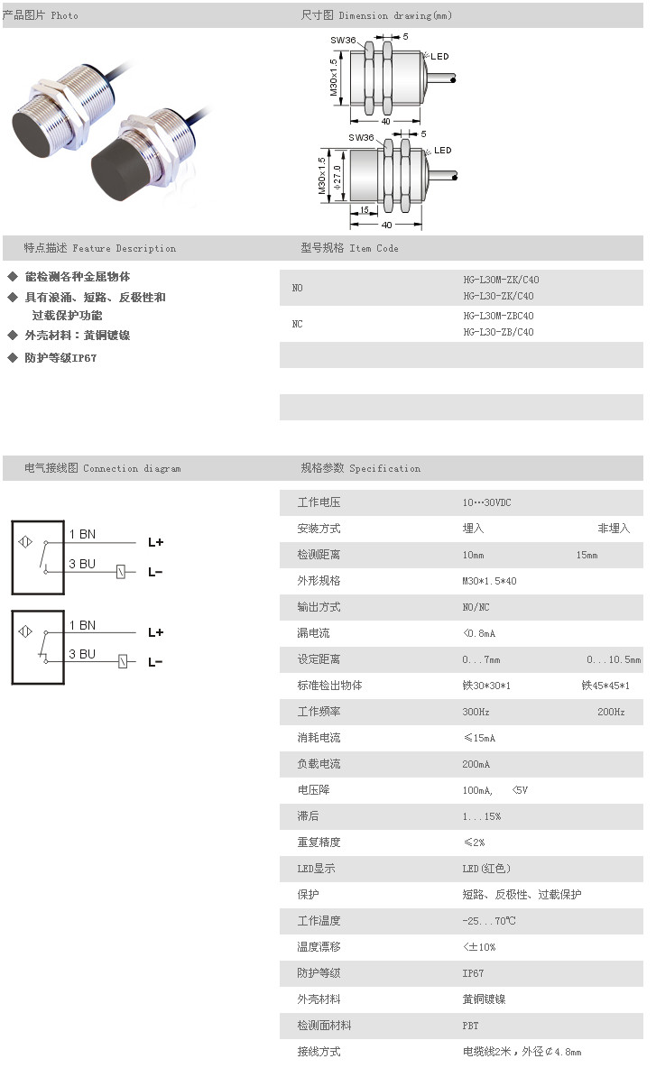 圓柱型接近開關(guān) HG-L30M-ZK/C40,HG-L30-ZK/C40,HG-L30M-ZBC40,HG-L30-ZB/C40,