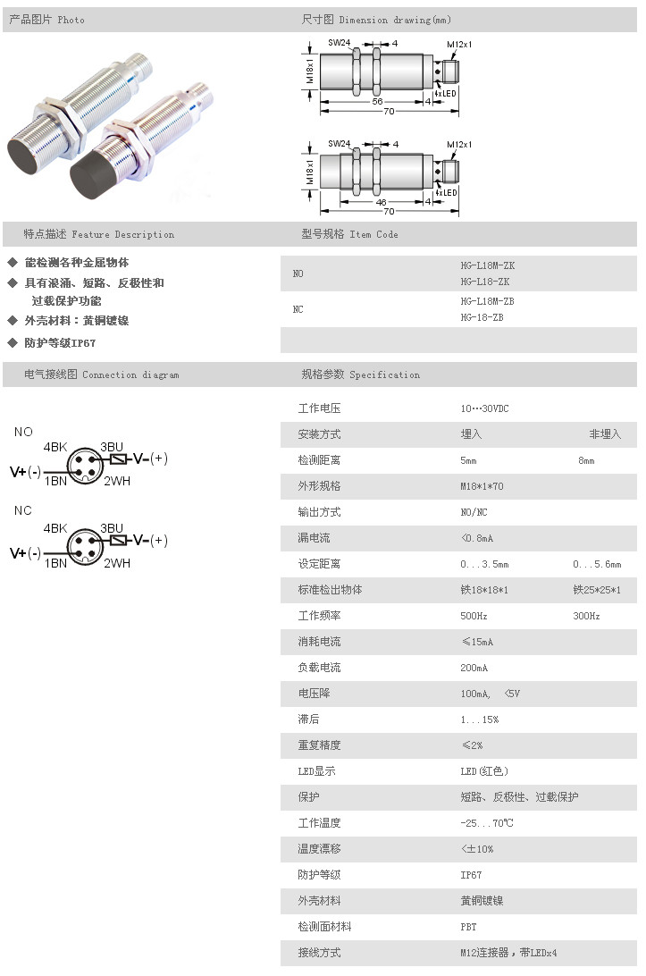 圓柱型接近開關(guān) HG-L18M-ZK,HG-L18-ZK,HG-L18M-ZB,HG-L18-ZB,