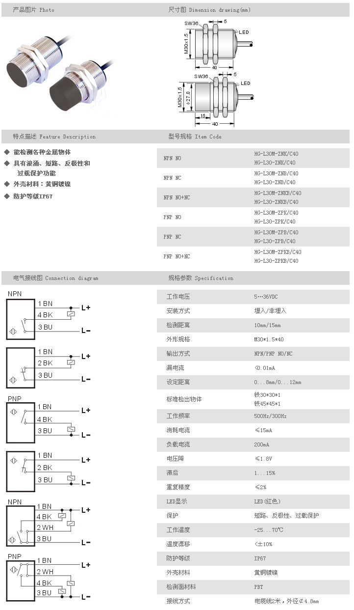 圓柱型接近開關(guān) HG-L30M-ZNK,HG-L30-ZNK,HG-L30M-ZNB,HG-L30-ZNB,HG-L30M-ZNKB,HG-L30-ZNKB,