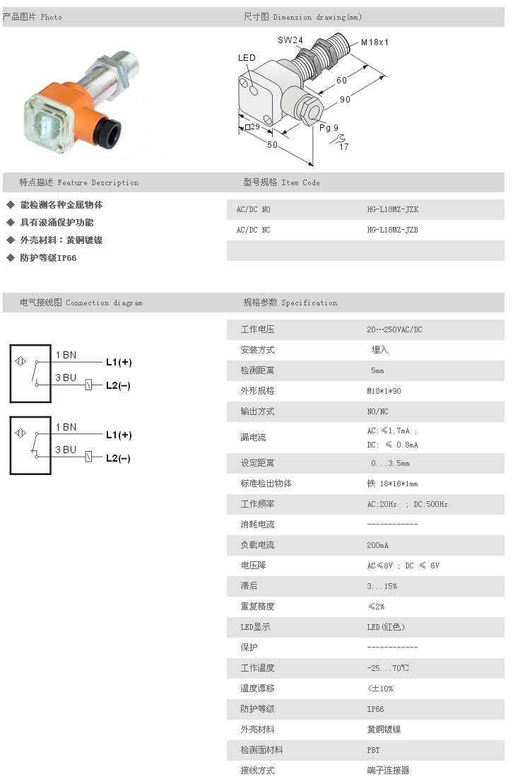 L18MZ圓柱型接近開關(guān) HG-L18MZ-JZK,HG-L18MZ-JZB,