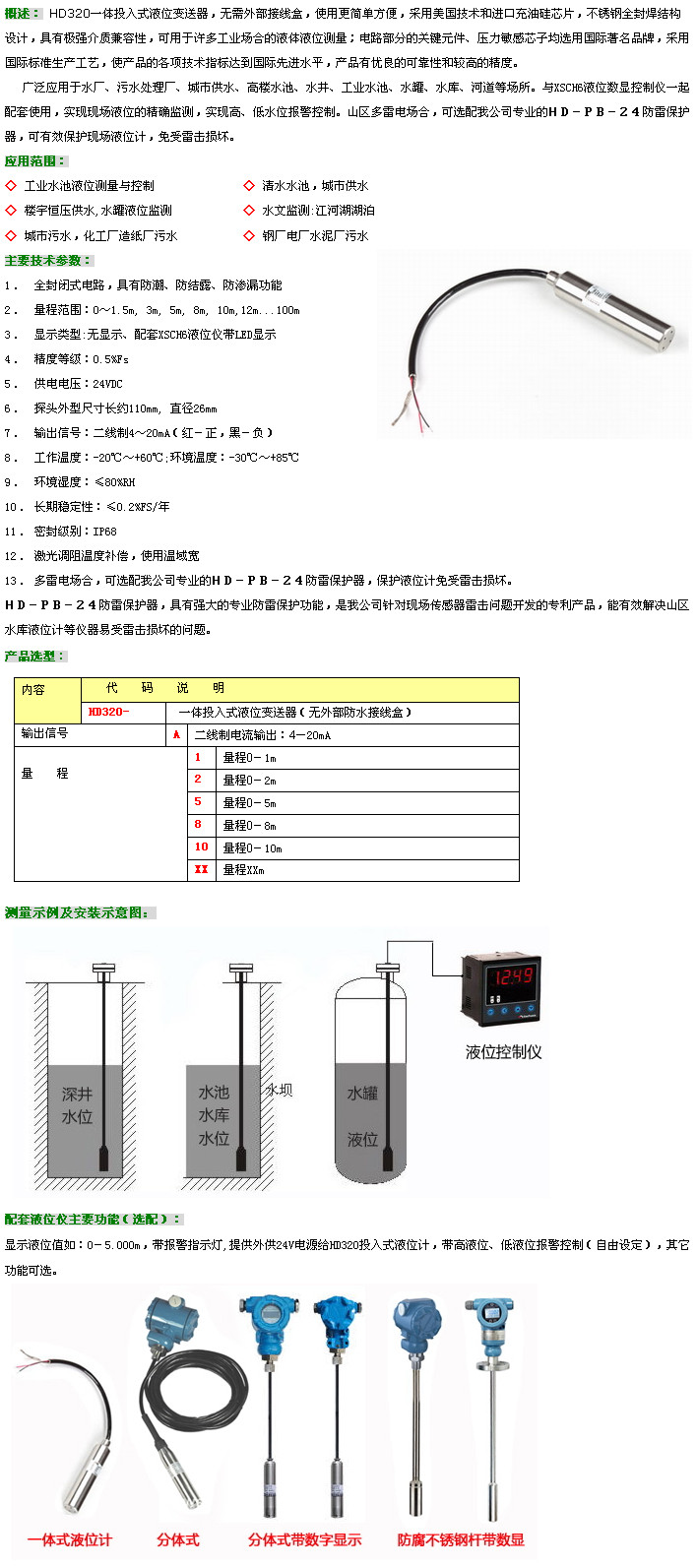 HD320-A1,HD320-A2,HD320-A5,HD320-A8,HD320-A10,HD320-AXX,HD320,一體式液位變送器