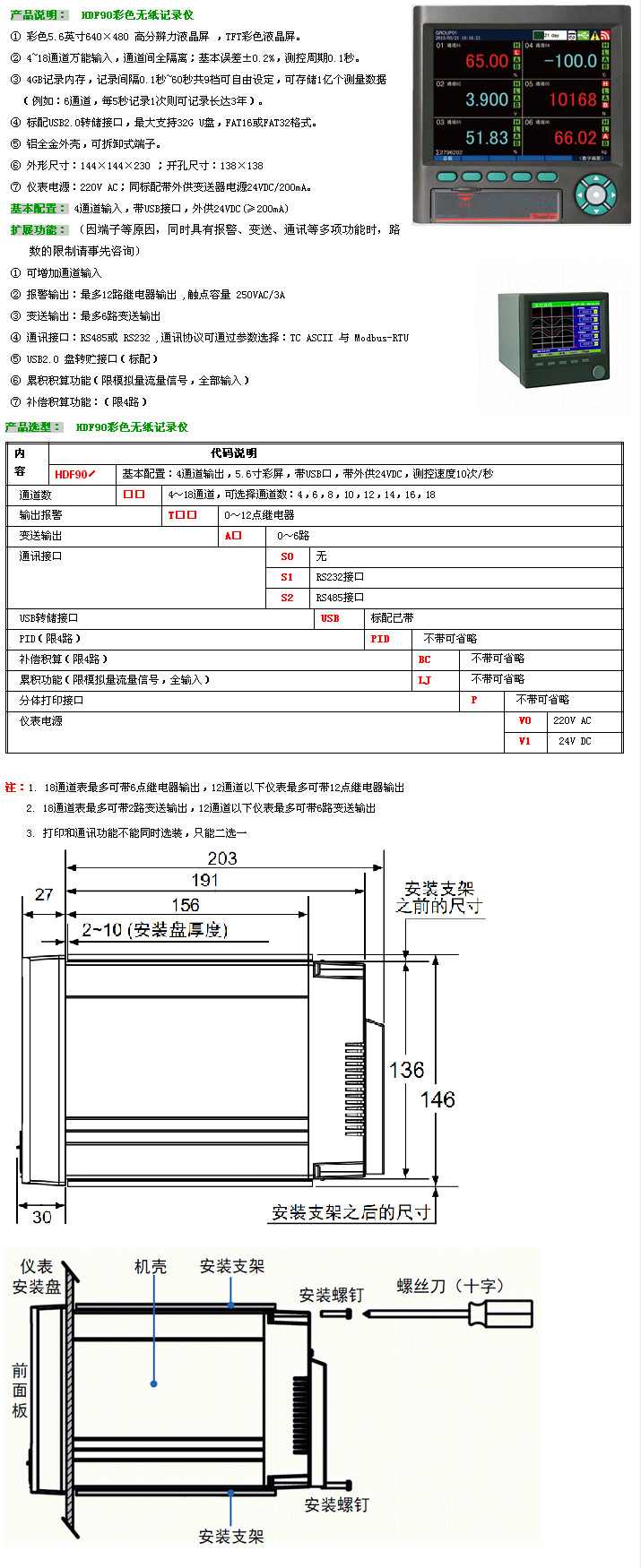 HDF90-4,HDF90-6,HDF90-8,HDF90-10,HDF90-12,HDF90-14,HDF90-16,HDF90-18,HDF90,彩色無紙記錄儀 |