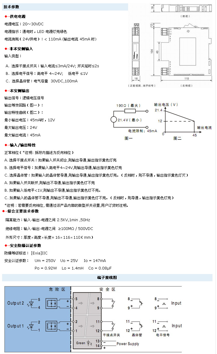 邏輯電壓:12V<Vo<21.4V 最大輸出電流:45 mA |