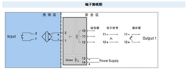 接收來自危險區(qū)域的開關(guān)或接近開關(guān)信號,通過安全柵隔離,以繼電器觸點(電平信號或晶體管)輸出方式傳送至安全區(qū)的控制系統(tǒng)或其它組合儀表。