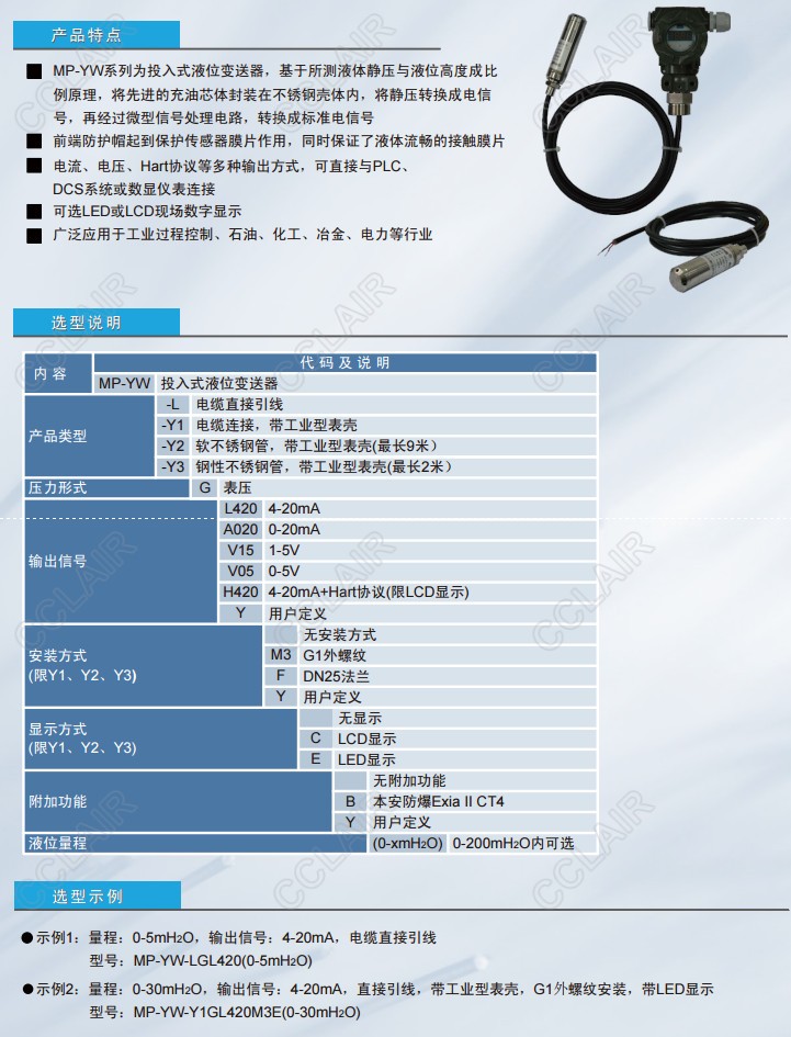 MP-YW-L,MP-YW-Y1,MP-YW-Y2,MP-YW-Y3,MP-YW-LGL420,MP-YW-Y1GL420M3E,MP-YW,投入式液位變送器