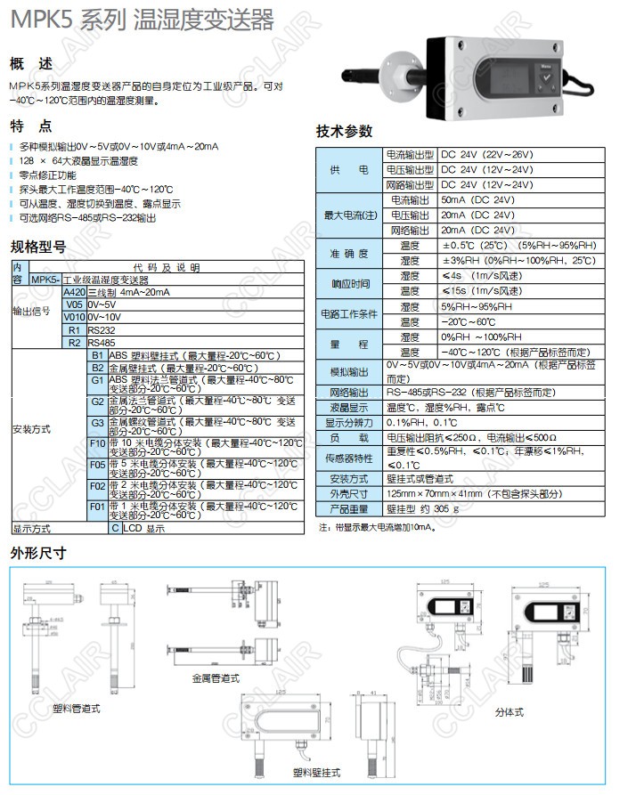MPK5-A420,MPK5-V05,MPK5-V010,MPK5-R1,MPK5-R2,MPK5,溫濕度變送器
