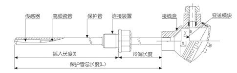 1、 基本結(jié)構(gòu): 傳感器+(連接裝置+接線盒+保護管)+變送模塊
