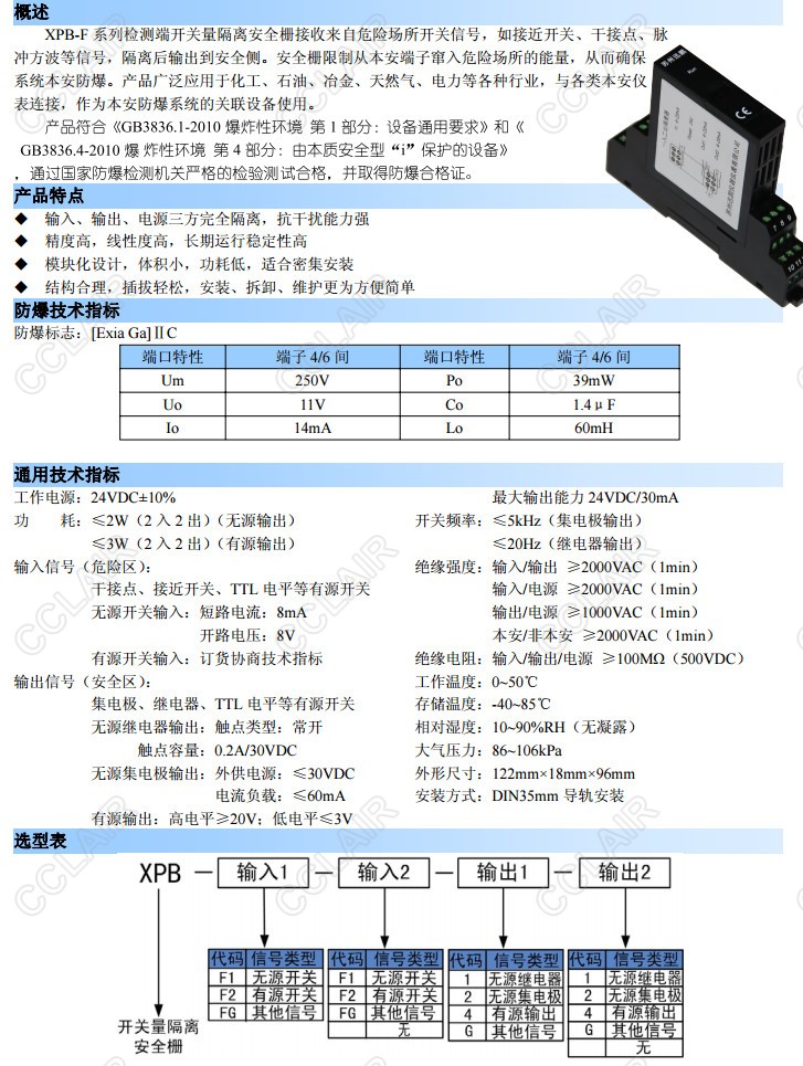 XPB-F1-1,XPB-F2-44,XPB-F,檢測端開關(guān)量隔離安全柵