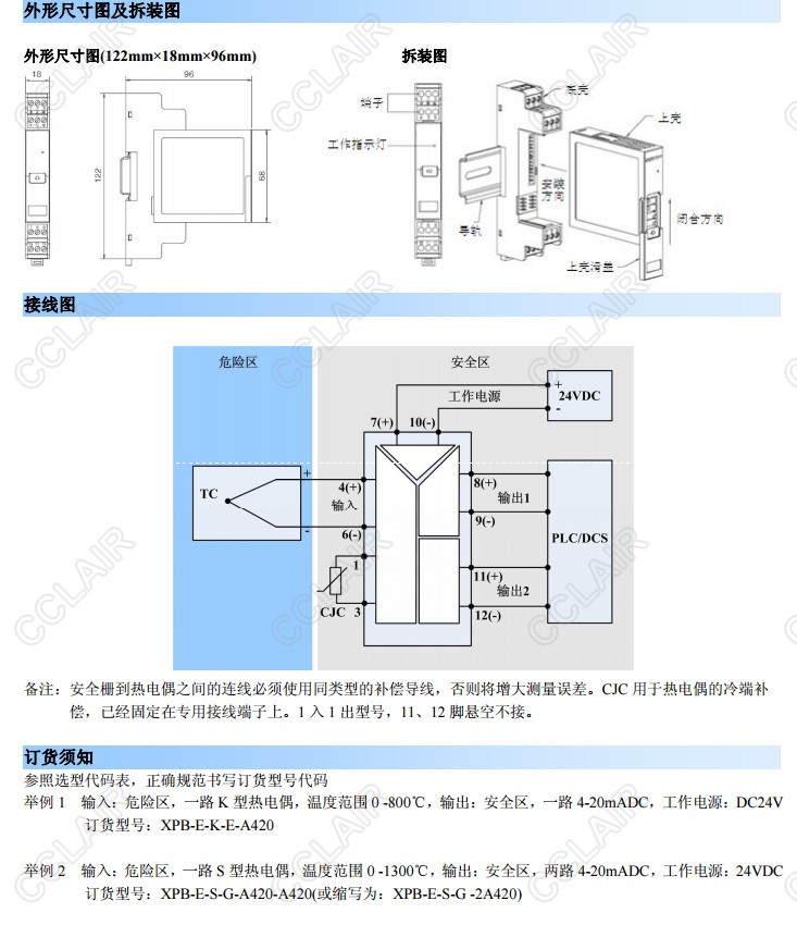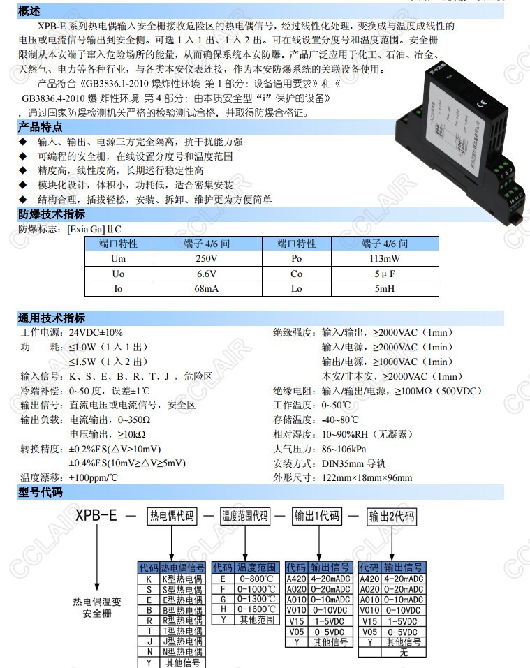 XPB-E-K-E-A420,XPB-E-S-G-A420-A420,XPB-E-S-G-2A420,XPB-E,熱電偶輸入安全柵