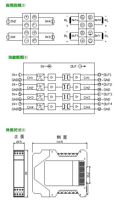 例:4路輸入4-20mA ;4路輸出4-20mA ,無外部供電