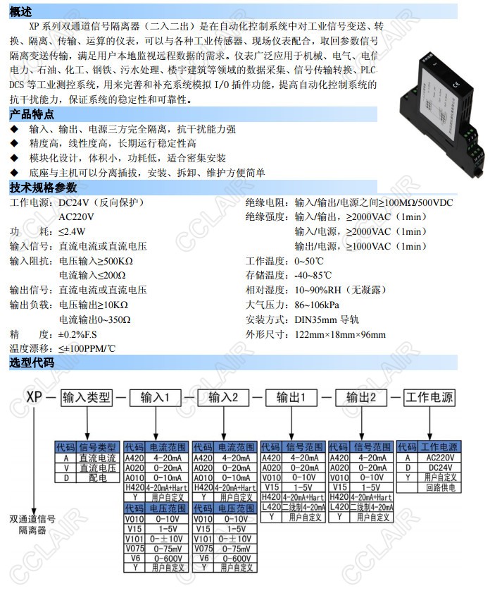 XP-A-2A420-2A420-D,XP-D-2A420-2A420-D,XP-D-2A420-2L420,XP,雙通道信號隔離器