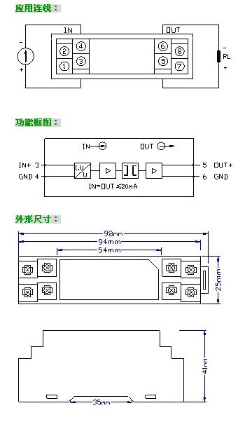 例:輸入4-20mA ;輸出4-20mA,無外供電