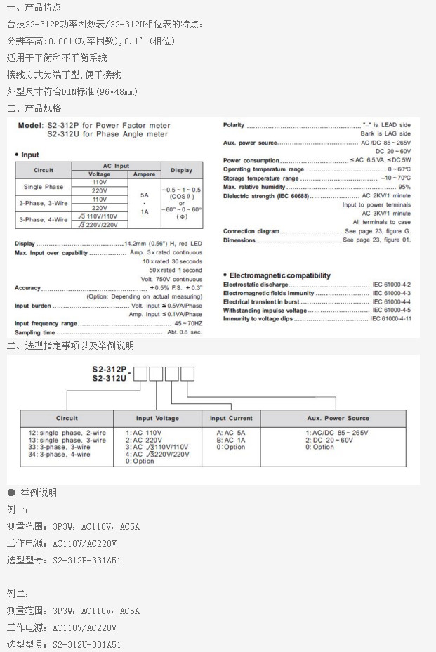 S2-312P-331A51,S2-312U-331A51,S2-312P,功率因數(shù)表/S2-312U,相位表