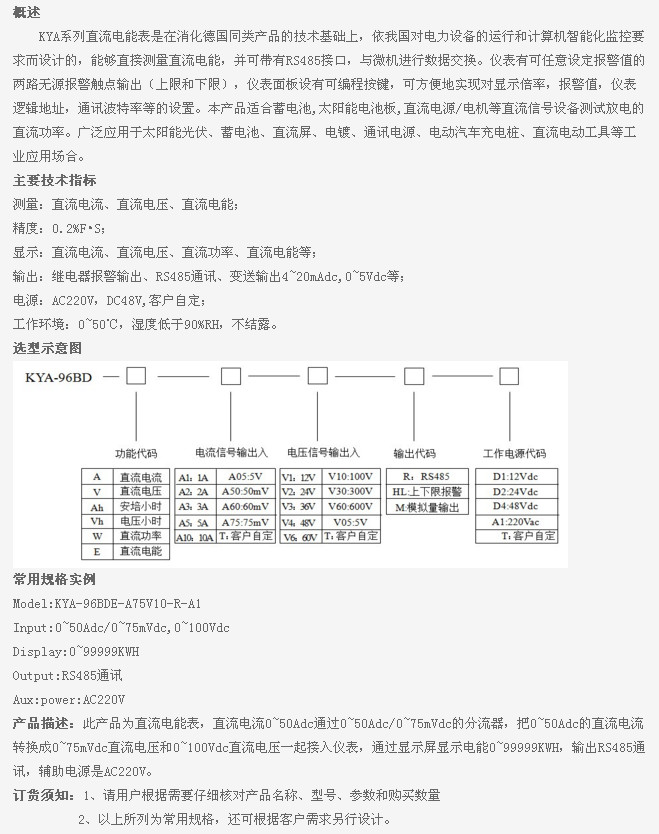 KYA-96BDE-A1,KYA-96BDE-A2,KYA-96BDE-A3,KYA-96BDE-A75V10-R-A1,KYA,直流電能表