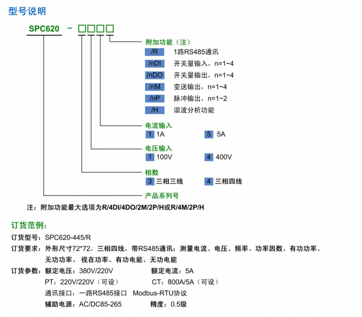 SPC620-311/R,SPC620-311/nDI,SPC620-311/nDO,SPC620-311/nM,SPC620-311/nP,SPC620-311/H,多功能電力儀表