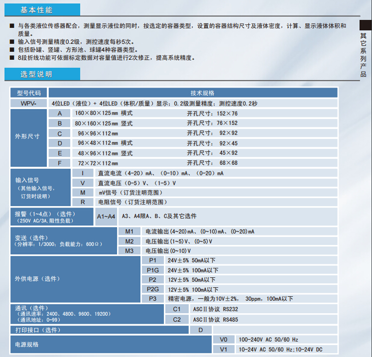 WPV-A,WPV-B,WPV-C,WPV-D,WPV-E,WPV-F,WPV液位/容量顯示儀
